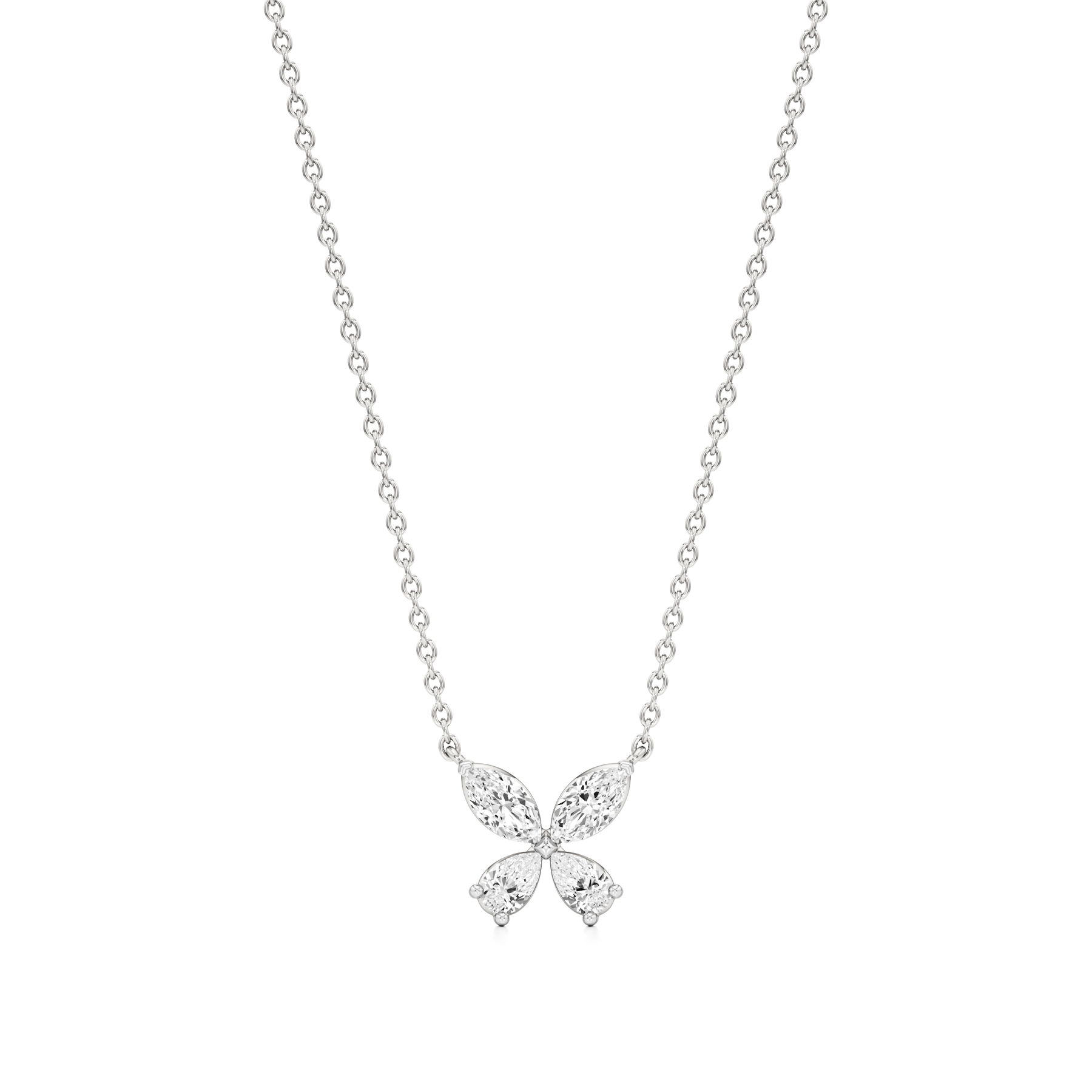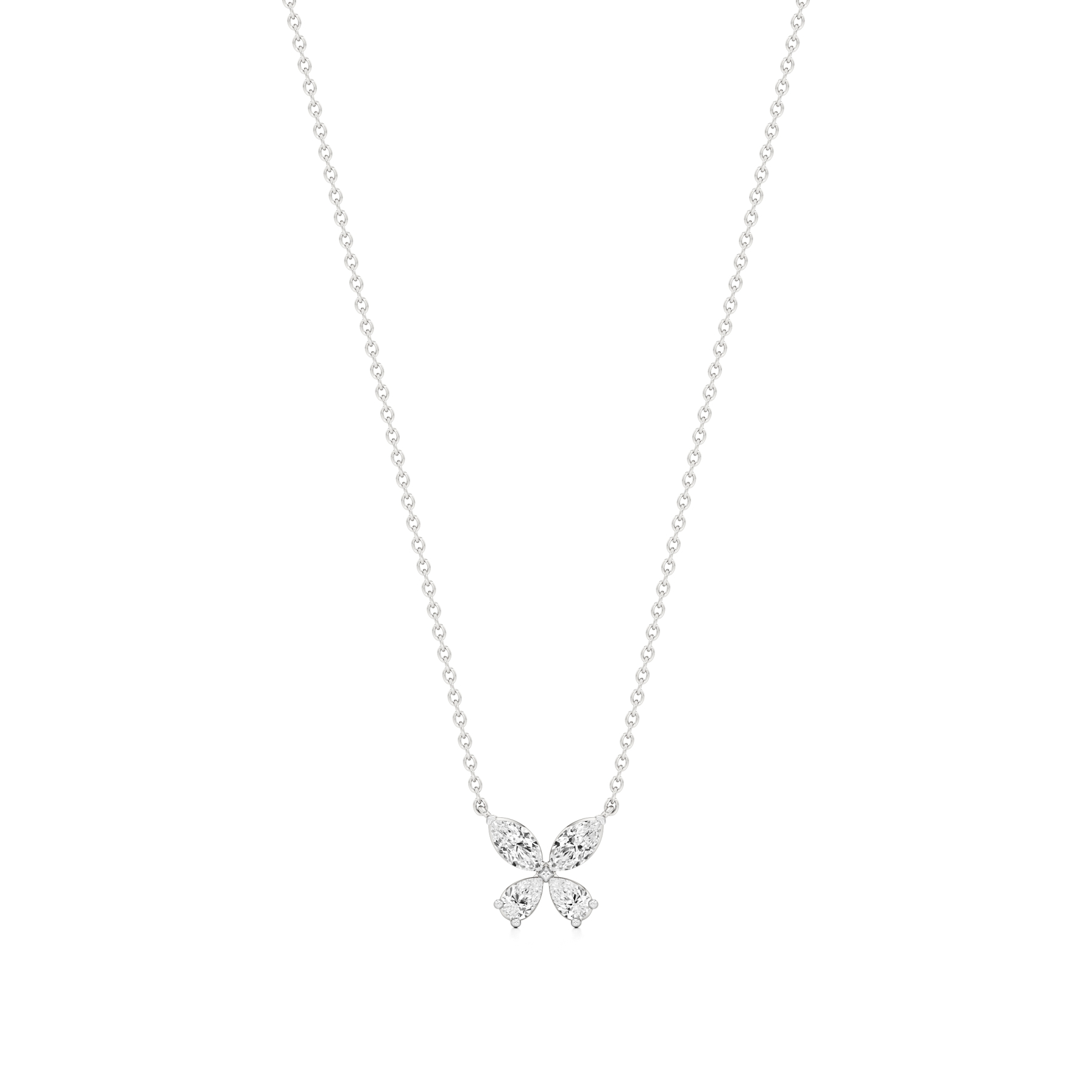 The Butterfly Gleam Diamond Pendant showcases 0.60 carats of marquise-cut diamonds arranged in a graceful butterfly-inspired design. This pendant combines nature's beauty with timeless elegance, making it perfect for festive occasions, casual outings, or daily wear.