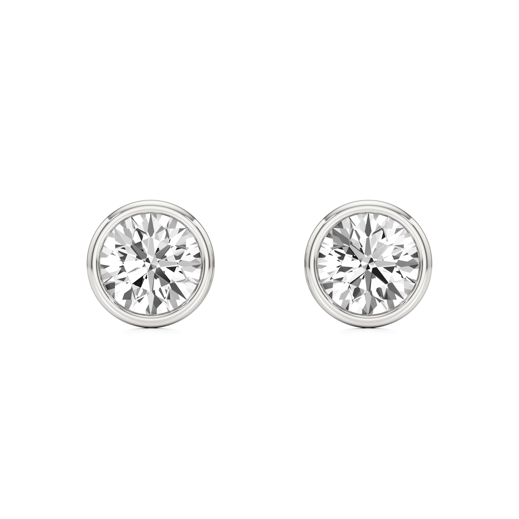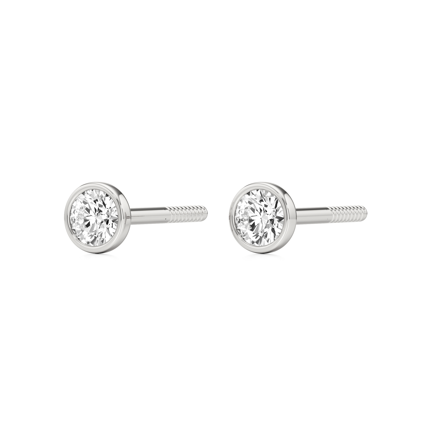 These bezel-set baby diamond studs feature a 0.25ct round brilliant center stone, secured in a smooth setting for added safety. With a total diamond weight of 0.50ct, they offer subtle elegance and comfort. Designed for daily wear, these studs are perfect for delicate baby ears.
